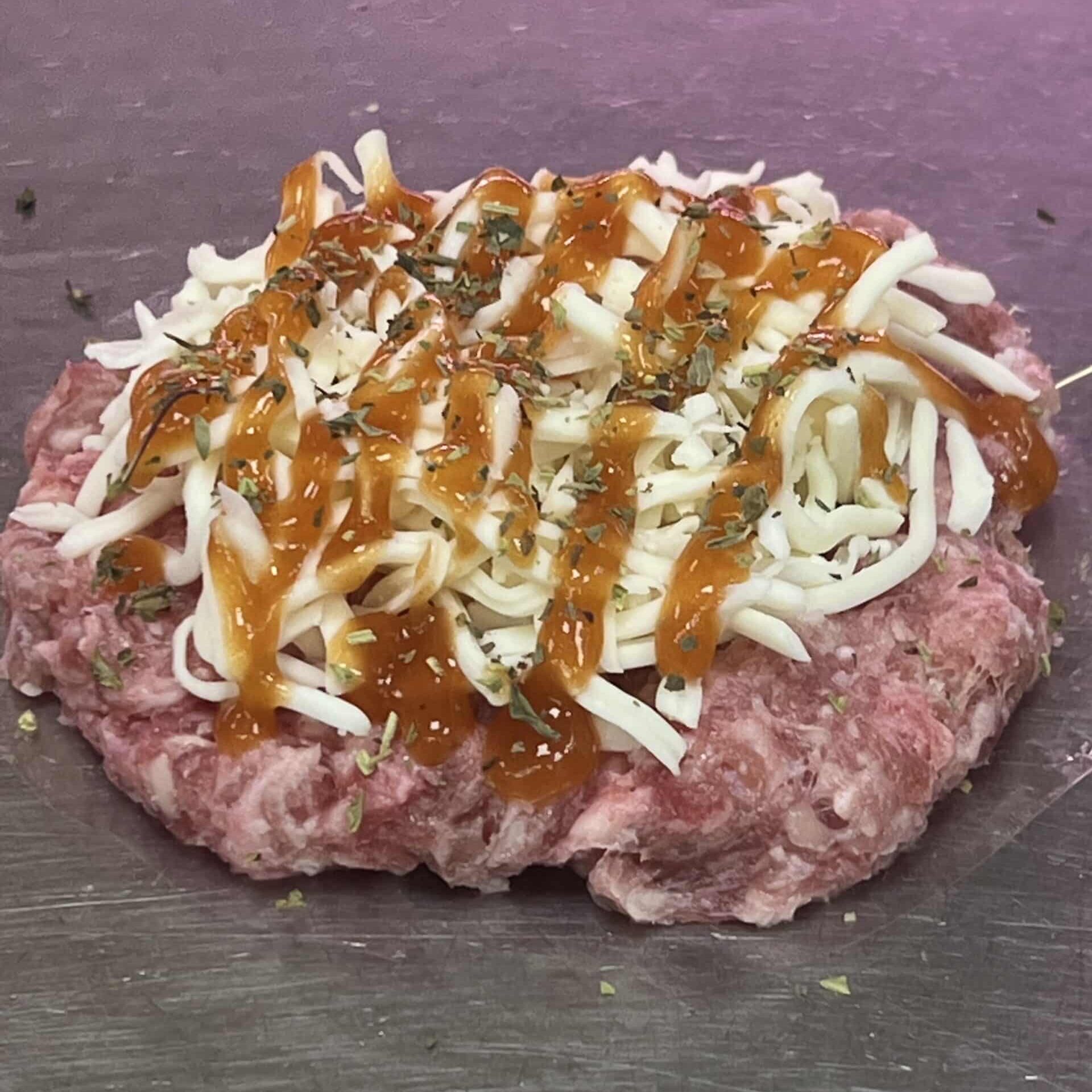 Hamburguesa mixta, tomate, mozzarella y orégano.